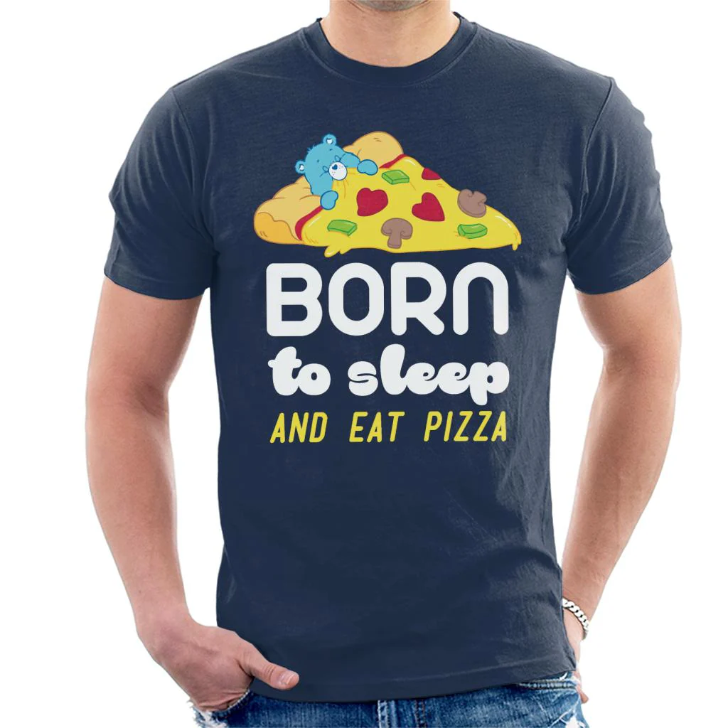 Bedtime Bear Born To Sleep And Eat Pizza White Text Men's T-Shirt