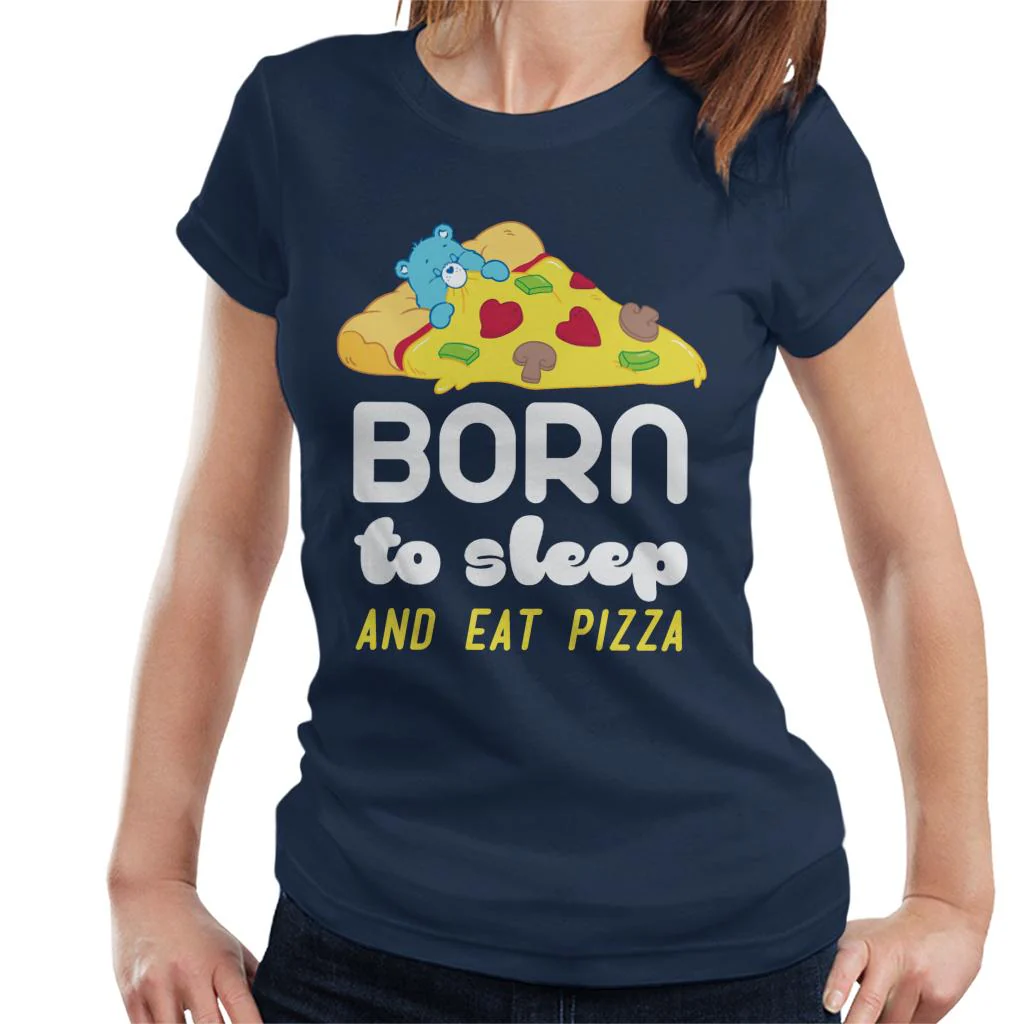 Bedtime Bear Born To Sleep And Eat Pizza White Text Women's T-Shirt