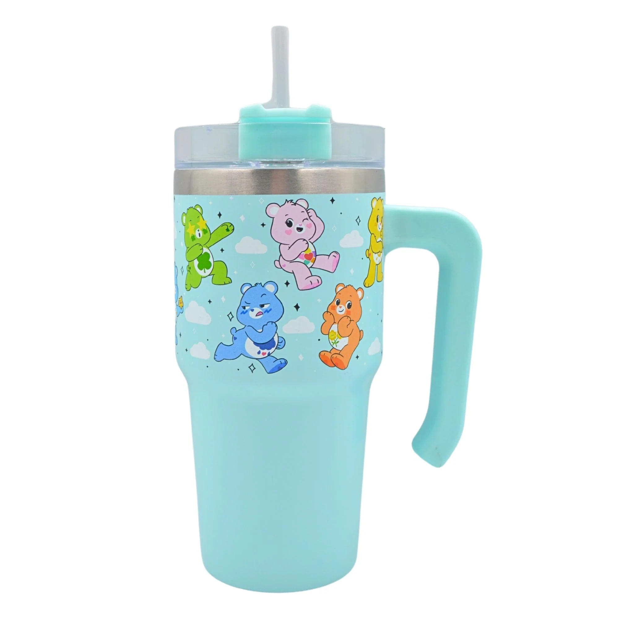 - Care Bears 20oz Travel Tumbler – Turquoise insulated tumbler with handle and straw, decorated with adorable baby Care Bears in pastel clouds