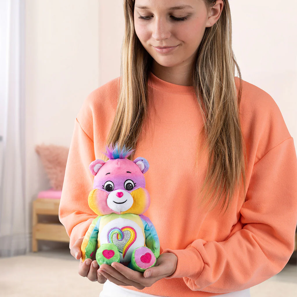 These adorable Care Bear plushies have a twinkle in their eye…and on their bellies! The Care Bears are a lovable collection of Bears on a mission: to spread smiles and joy with their NEW glitter eyes and beautiful glitter belly badges! And with NEW character expressions, they’re sure to dazzle you with delight!